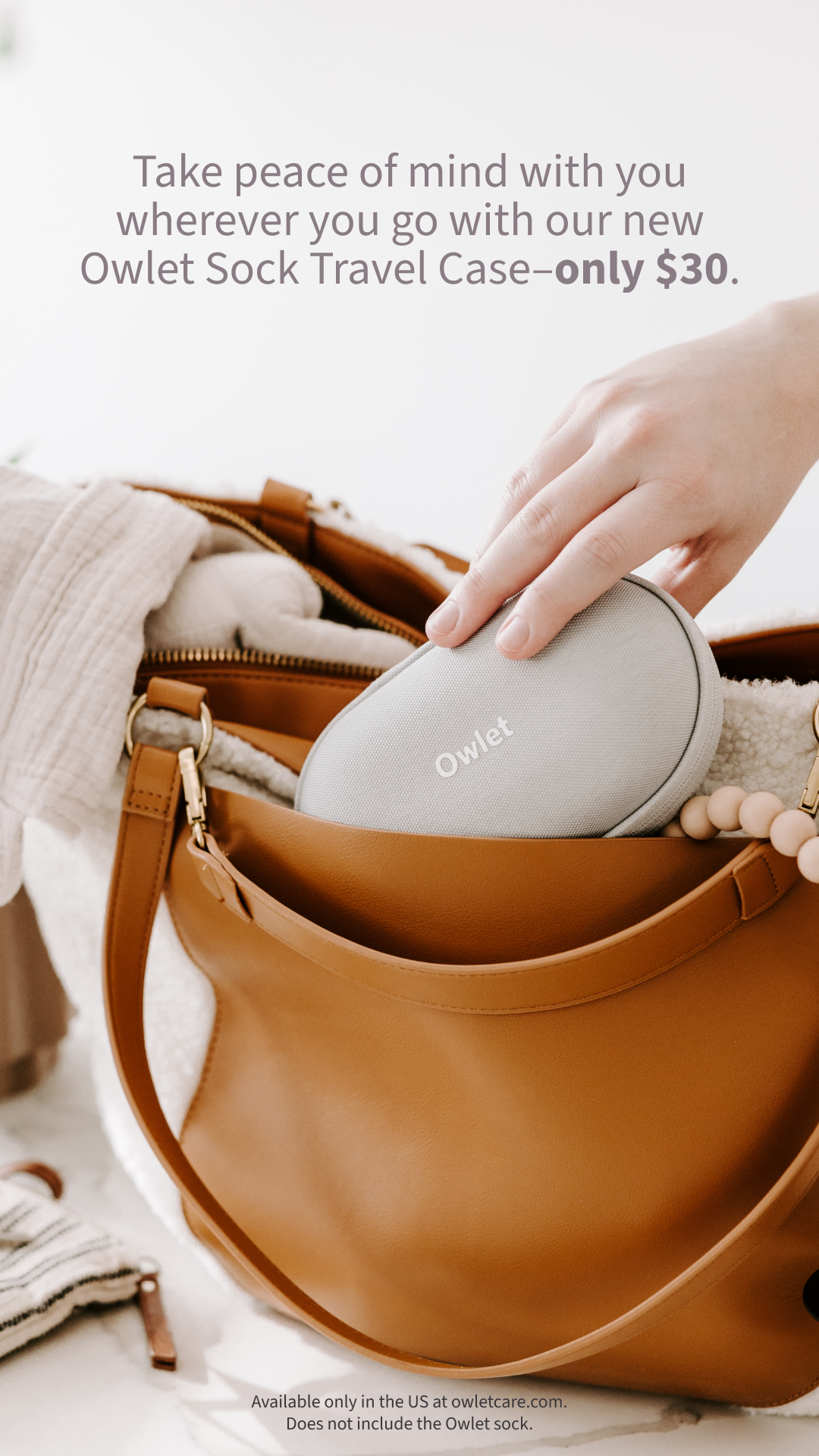 Our campaign targeted existing Owlet parents through minimalist, lifestyle-focused visuals showcasing seamless moments of the compact Travel Case slipped into diaper bags and car seats. The strategic branding and imagery drove awareness and adoption among our current customer base who were invested in our products but needed an improved travel solution.